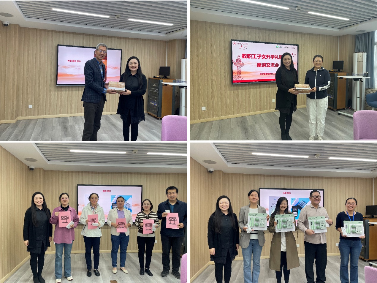 活动现场氛围热烈,洋溢着喜悦与温馨。今年升入新学段的教职工子女有新升入幼儿园、小学、初中、高中、大学等,学院工会精心准备了升学礼包,送上真挚的祝福。在交流环节,教职工们畅所欲言,纷纷分享亲子关系、育儿经验、升学陪考感受等。大家互相交流心得,共同探讨育儿之道,现场不时传来阵阵笑声和掌声。