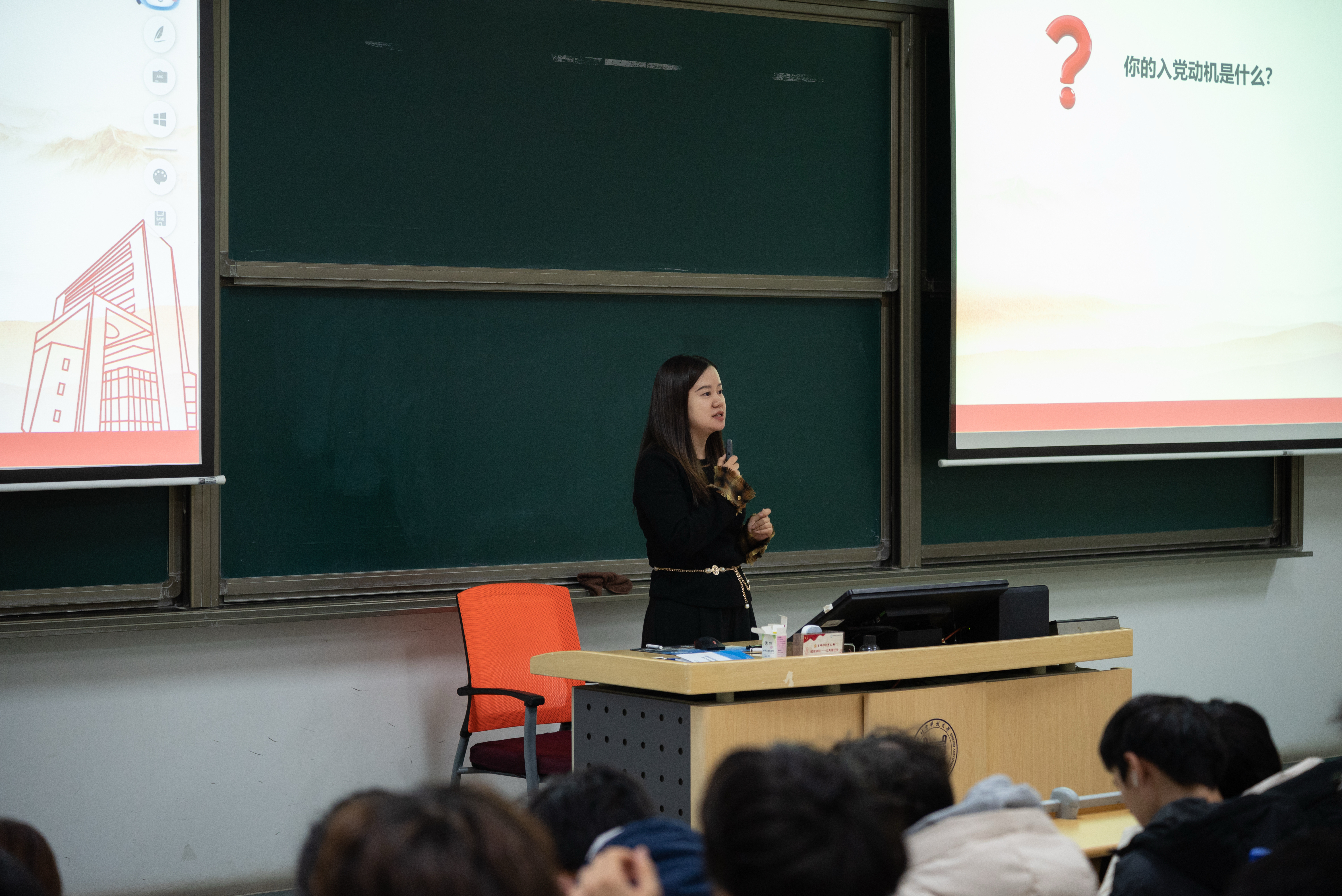 张晓佳详细解读了入党全流程的关键节点,明确了从提交入党申请到成为正式党员的培养考察要求,强调要主动加强党的理论知识学习,积极参与党组织开展的各类实践活动,认真完成各项任务,在思想上追求先进、在行动上坚定有力、在学业上奋勇争先,以实际行动接受党组织的培养与考察,努力向合格共产党员的标准看齐。