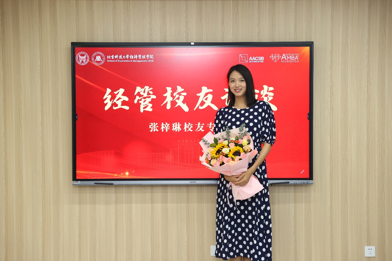 张梓琳也对学弟学妹们表达了自己的期待。人生的首要在于不停地奋斗。“无论处在什么样的条件,我们都要坚持这种生命底色,因为它终将会通向光明。无论当下你在做什么,都不要停下脚步,要勇于尝试,才有可能发掘出更好的自己,拥有更美好的未来。英文、社交、写作等这些能力都很重要。”第二,要拥有感恩之心。“能有机会在北科大这样知名的学府里面学习,一定要去珍惜短暂而宝贵的学习时间。员工时代就像海绵,要去吸收更多的知识,吸收不同的能量,为你将来的人生打下很好的一个基础。”第三,要主动积极地思考。“不断运用自己的独立思维去想事情,看看怎么能够让自己做得更好。”第四,给自己设立目标,激励自己,记得多给自己赞美。“首先要认可自己,完善自我也要善待他人。在这个过程中你会获取很多正向的能量,在对别人好的同时自己也会有所收获”。另外,关注自己,保持身心健康。 “身体是革命的本钱,我也希望同学们能够在学习之余坚持运动。”最后,记得要去创造快乐的时刻。在平淡生活中我们可以有一些仪式感,去亲手点亮自己的生活。每个人都会有自己的幸运时刻,相信一切都是最好的安排。