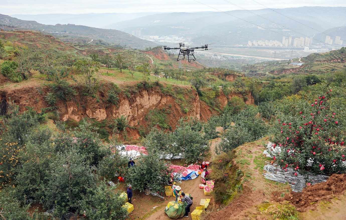 在智能物流端,针对山地果园运输难题,引入无人机低空运输系统,打造全新物流通道。“伴随着轰鸣声,一架大型无人机从地面升起,短短几分钟,一满筐苹果从山脚‘飞’向公路边。”测试显示,运输效率显著提升,成本大幅降低。