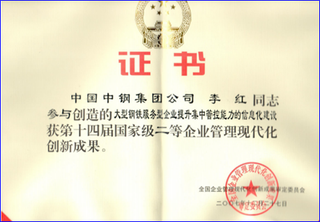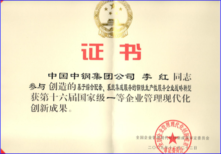 李红荣获国家级一等企业管理现代化创新成果奖