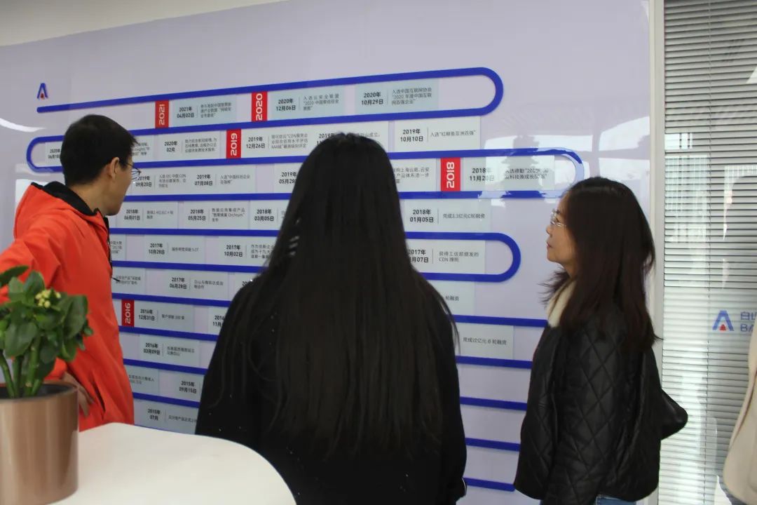 霍涛代表公司对到访人员表示热烈欢迎,并带领大家参观。洽谈会上,霍涛就公司架构、公司定位、公司产品运营情况以及产学研联合发展进行详细介绍,并表示北科大经管学院的团队建设、人才培养方向和公司需求非常匹配,日后将会持续推进与学院的合作交流。随后,符立佳讲解了公司的独特人才培养模式,运用“导师制”和“大学制”双轨培养,以企业大学为培训载体,紧密承接企业的长远人才发展战略,表示可以和学院进行深度合作。