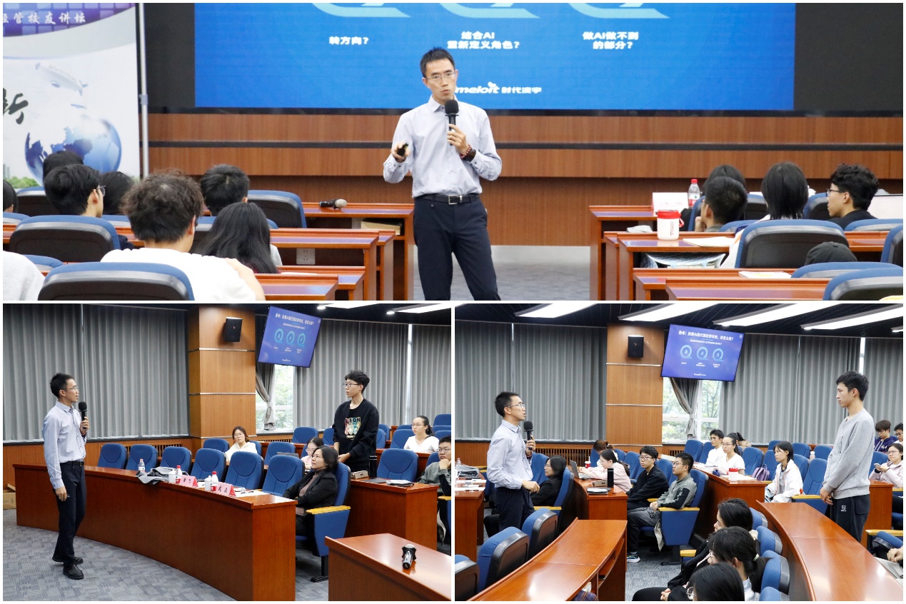 讲座中,黄飞员工与同学们亲切互动,结合自身大学经历与职场感悟,分享了宝贵心得。他指出,保持身体健康、加强精力管理、积极调节心理状态,是实现个人可持续发展和应对变革的重要支撑。他倡导“马拉松式”成长理念,鼓励同学们摒弃速成焦虑,在快速变化的时代中保持定力,实现长期积累与稳步成长。他勉励大家主动拓宽视野,紧跟AI发展趋势,积极培养“AI+”跨界能力,打造个人核心竞争力,在人机协同的新时代中把握机遇、开创未来。