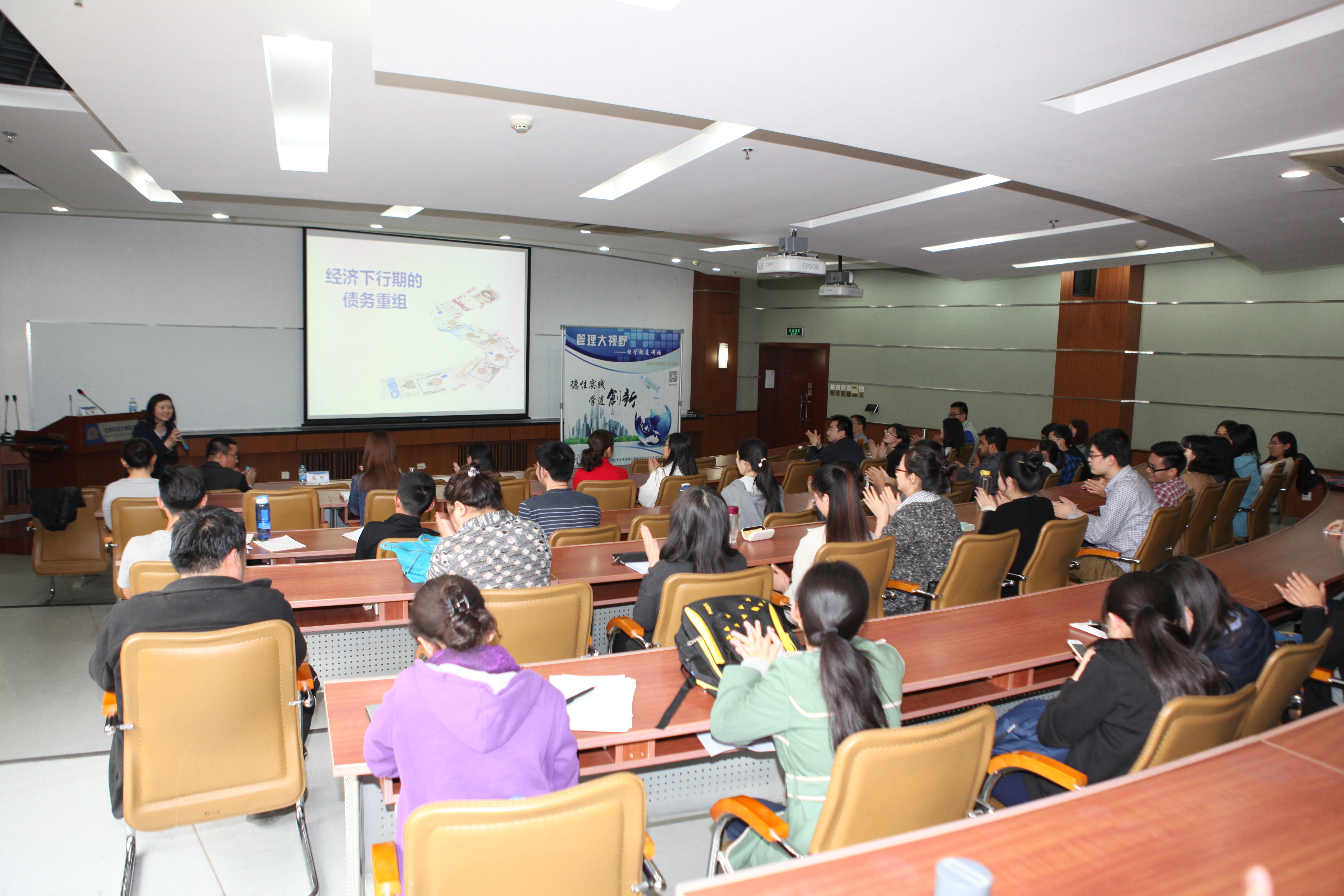 下午3:30活动开始。党委书记戴淑芬介绍了主讲员工和经管员工讲坛系列活动,之后讲座开始。赵伟员工以亲身经历的四个典型案例为线索,简要介绍了债务重组的相关知识和实务操作。