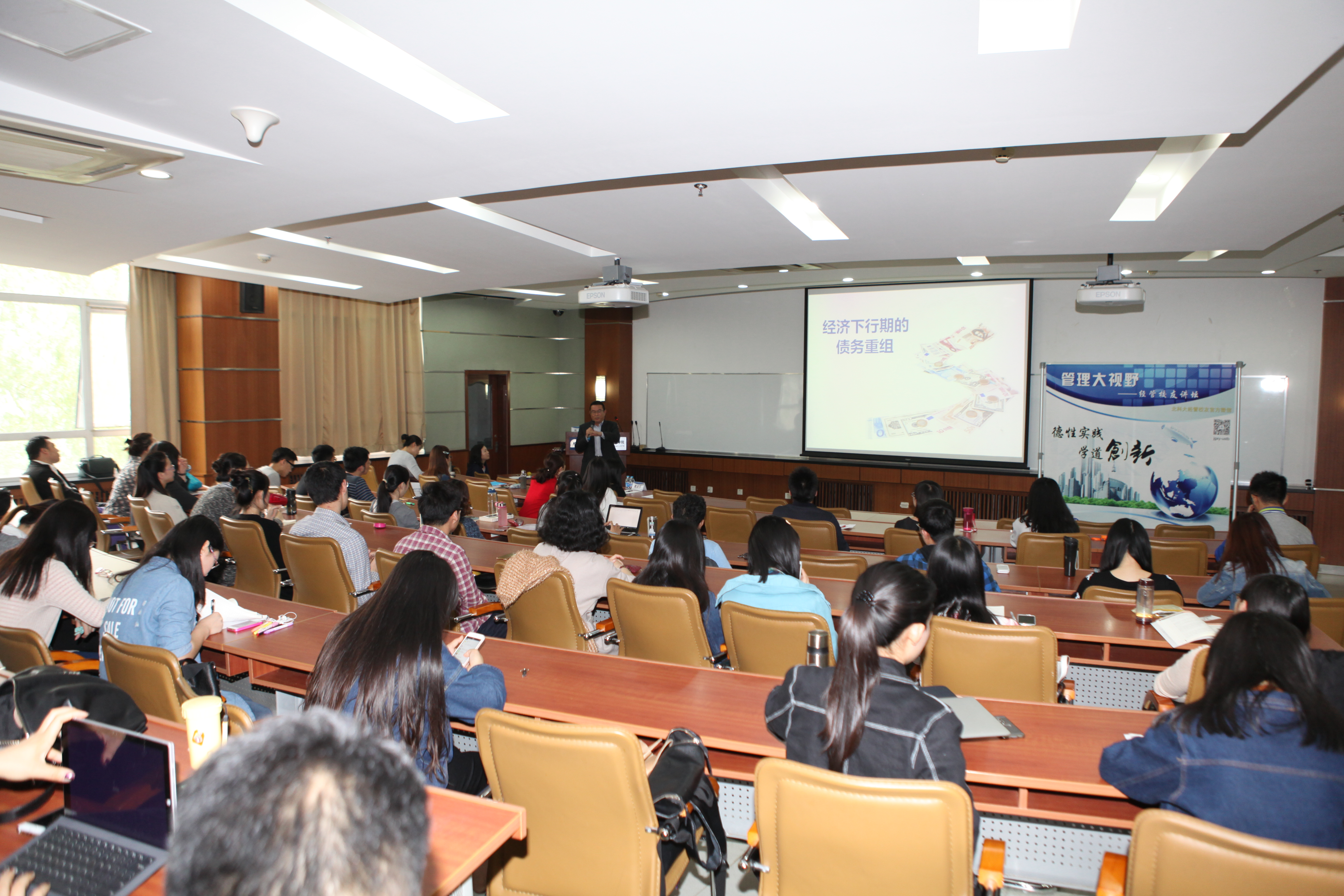 2016年4月27日,东凌经管学院35周年院庆纪念活动之“管理大视野—经管员工讲坛”第十三讲在经管楼312教室举办。本期讲座主题为“经济下行期的债务重组”,主讲嘉宾为学院管工83级员工赵伟。赵伟员工是德勤(Deloitte)中国合伙人,拥有超过二十五年的投资、并购、企业重组及信托等工作经验,曾就职于中国农村信托投资公司,英国机场公司(BAA),气候变化资本集团(CCC)等机构。