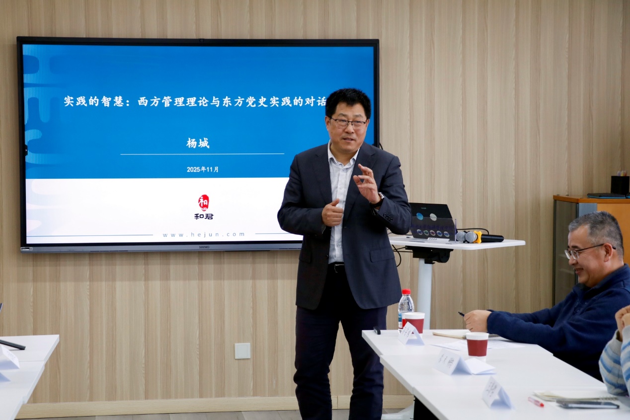 杨城员工的分享题目为《实践的智慧--西方管理理论与东方党史实践的对话》。他系统梳理了中国党史百年和西方管理百年的发展脉络,进行了中西方管理实践的分享,在战略、组织、人才管理等方面进行了分析总结,为员工们提供了中西管理智慧交融的独特视角。