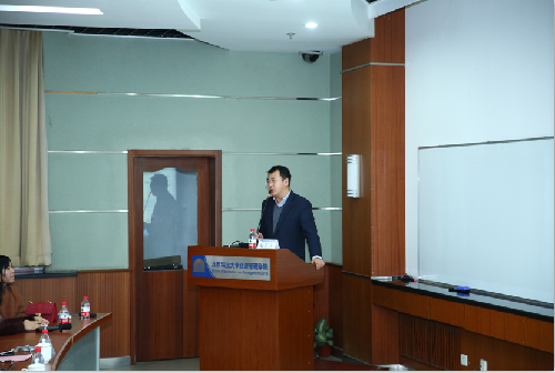 聘任仪式结束后,谢克海员工带来了一场精彩纷呈的主题讲座:5M领导力。他从总裁的视角深入浅出的分享了5M领导力的由来、具体内容和实践应用。用丰富多彩的实践案例、轻松有趣的企业故事,着重分析了人力资源管理领域“管理自我、管理上级、管理下属、管理同事和管理外部伙伴”五个部分。在座的同学们不仅享受到了一场知识的盛宴,同时也获得了职业选择和发展上的诸多建议。
