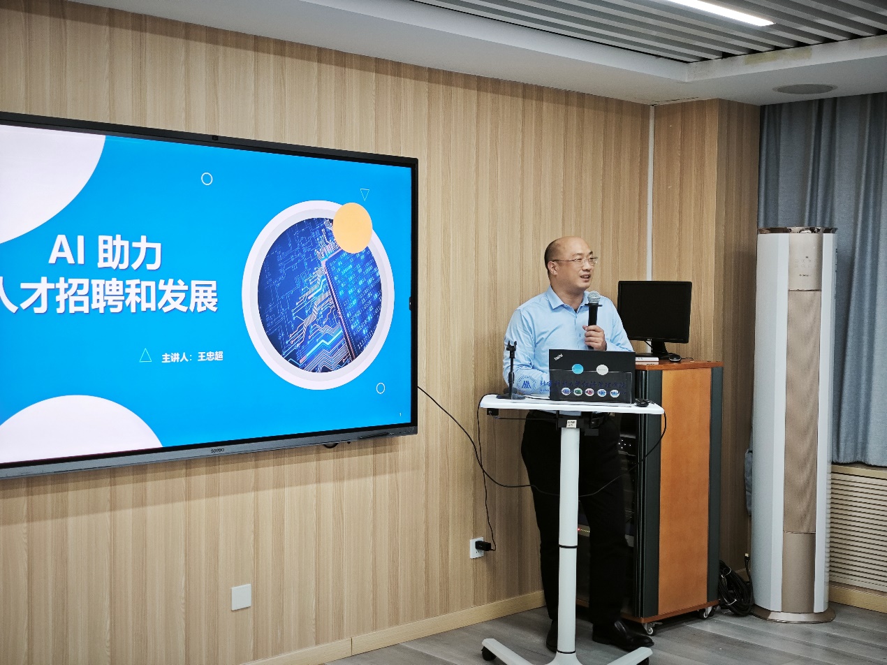 王忠超员工的分享题目为《AI工具助力人才招聘和发展》。他通过现场教学的方式,让员工们亲身体验了AI工具的应用,并深刻认识到了其带来的效率提升。他的分享引发了现场的热烈讨论。