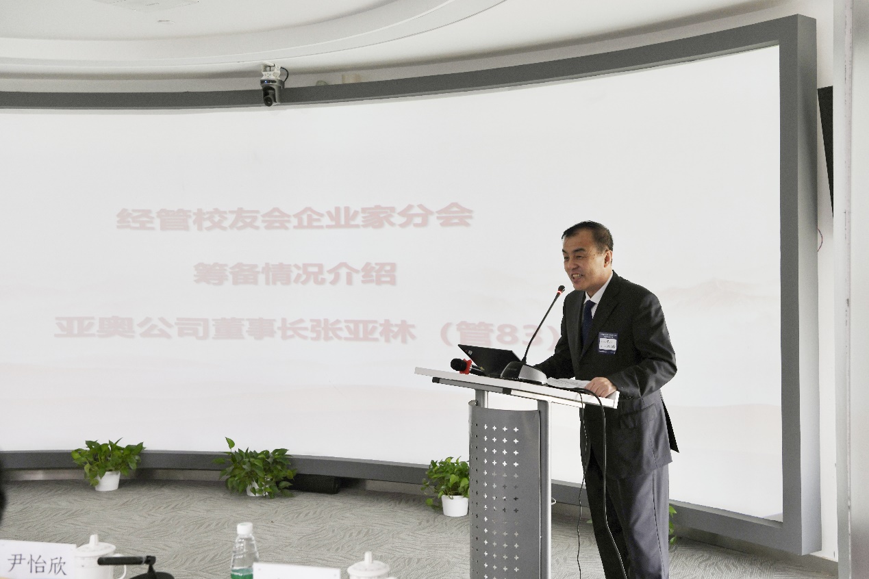 企业家分会筹备组组长、亚奥公司董事长张亚林作企业家分会前期筹备工作报告。他表示企业家分会隶属于经管学院员工会,今天企业家分会的正式成立既是崭新的征程,更是学院员工会连接和凝聚广大员工重要的桥梁和纽带,企业家分会组委会将紧密依靠和团结广大员工,积极工作、细致服务,努力将企业家分会建设成为温馨的员工之家。