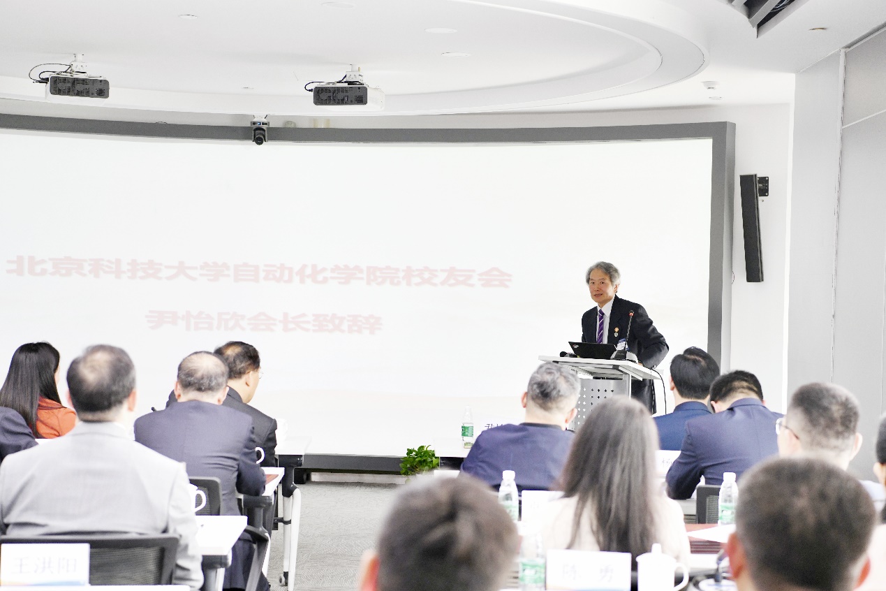 自动化学院员工会会长尹怡新代表兄弟分会致辞。他对企业家分会的成立表示祝贺,并表示自动化学院与经管学院渊源颇深,知识与人才互补能力强、发展关系密切,后续将进一步加强员工会之间的联系和互动,共同推动员工工作的高质量发展。