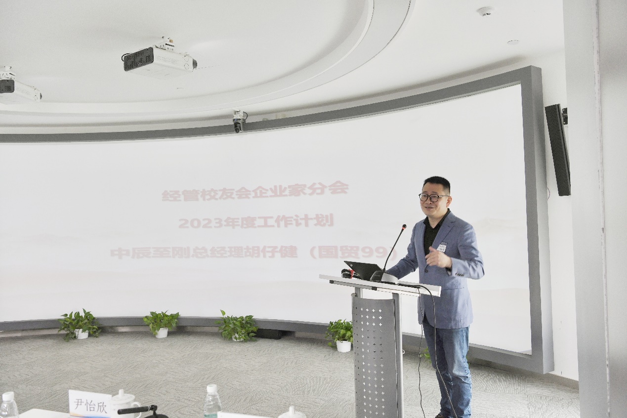 聘任仪式结束后,企业家分会副会长兼秘书长、北京中辰志刚科技有限公司总经理胡仔健汇报了2023年企业家分会年度工作计划。他表示,成立企业家分会的主要目的就是为经管企业家员工搭建一个终身学习、赋能成长并回馈母校的平台,同时加强员工交流,实现资源共享。胡仔健介绍了今年将要举办的企业家行业游学活动,春季在安徽开展“人力资源或先进制造”主题游学;夏季在黑龙江开展“矿产行业”主题游学;秋季在宁夏开展“军工行业”主题游学;冬季在浙江温岭开展“制造行业、大宗贸易”主题游学,他期待广大员工们积极参与。