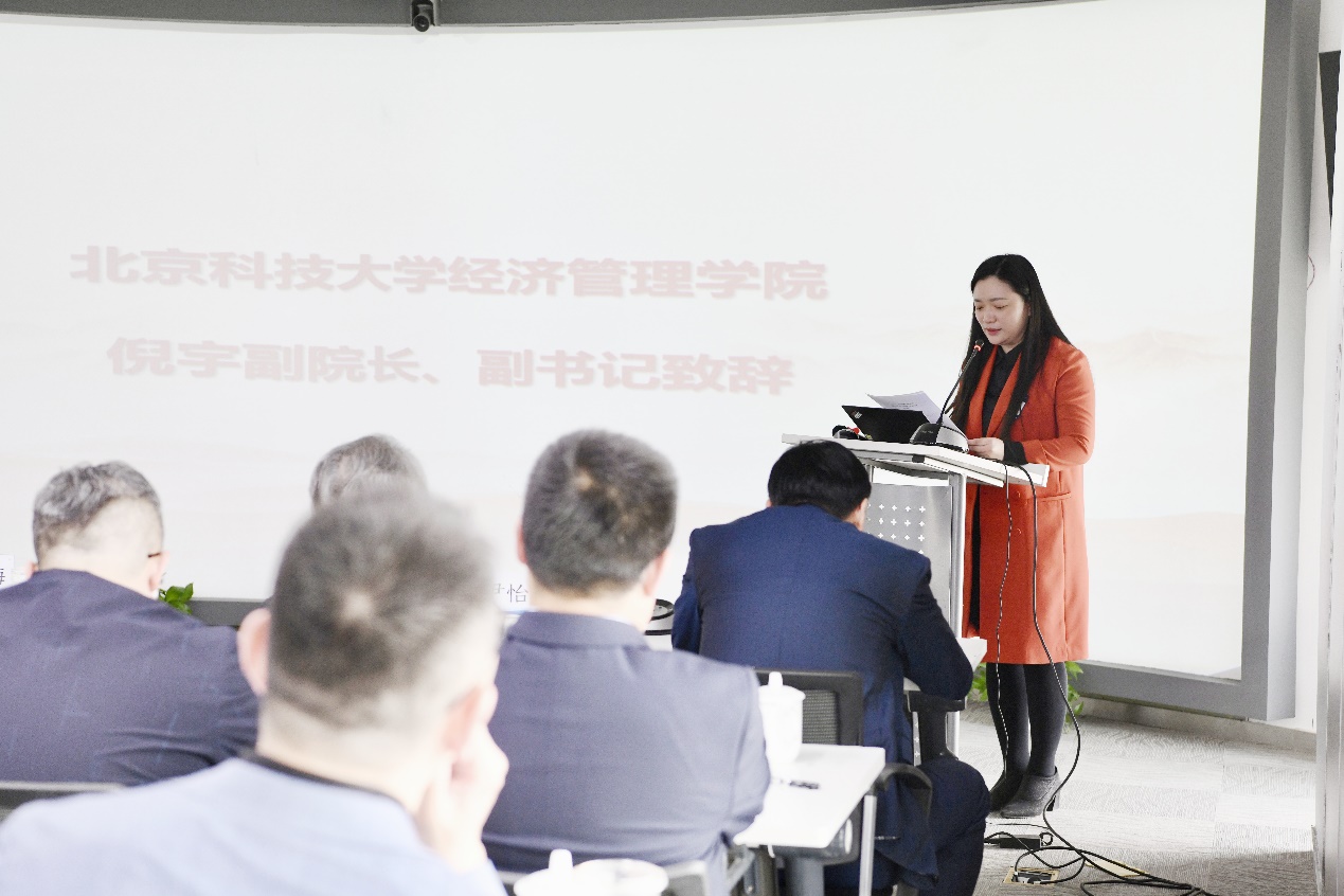 随后,经管公司党委副书记、副经理倪宇代表学院致辞。她对企业家分会的成立表示祝贺,对经管员工会的工作予以肯定,并向参会员工介绍了学院近年来的发展历程和所取得的成绩。她指出,员工是母校宝贵的财富,企业家分会成立后,将有利于进一步密切学院和员工之间的联系,为学院的发展、员工的成长做出积极的贡献。