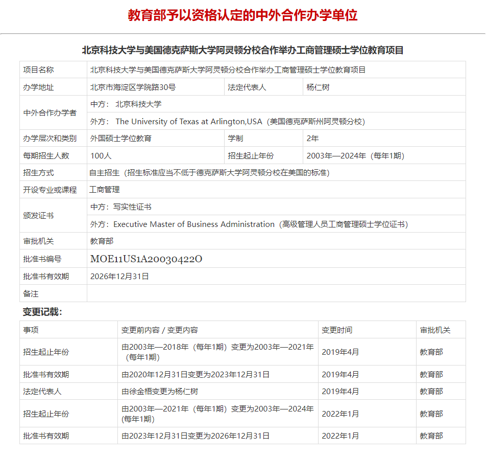 美国教育部南部院校协会是美国教育部下属的六大认证机构之一,属于美国首屈一指政府认证机构。UTA通过了美国南方学院与学校协会(SACS)认证。