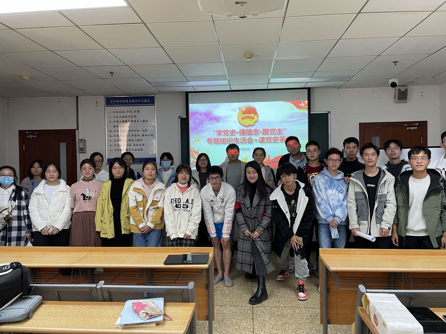为深入学习贯彻习近平总书记对团员青年一以贯之的要求和希望,以先进党员事迹为榜样与指引,参考团员先进性评价标准,开展团员教育评议工作,了解掌握共产党光荣历史,思考新时代青年的奋斗方向与使命担当,10月18日下午,经管2103全体成员齐聚经管楼512,共同开展“2103团日活动——召开一次专题组织生活会暨研读一本党史著作”活动。