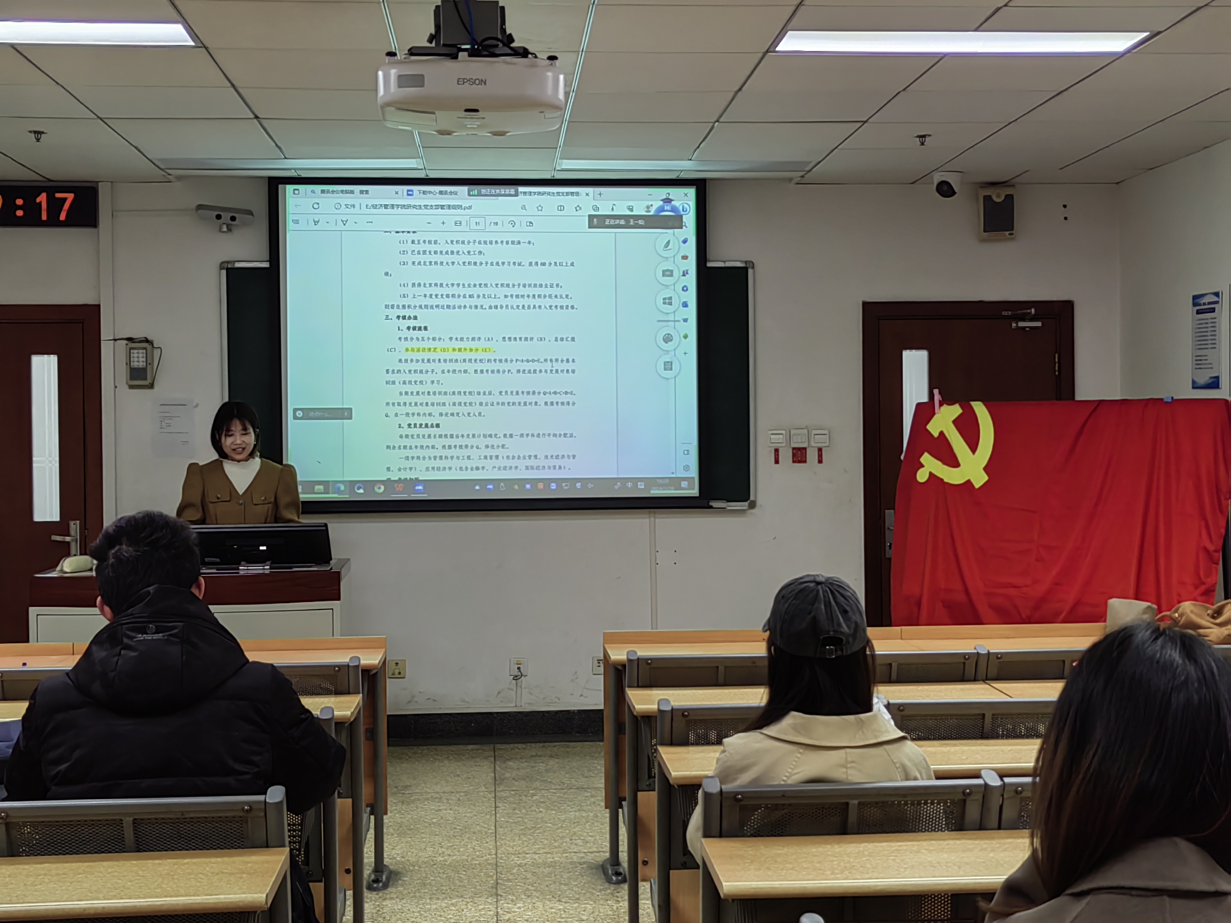 2024年3月29日19:00,英国威廉集团官网金融研党支部在经管楼504和管庄教学楼209开展3月组织生活,共有26人参与,其中正式党员17人,预备党员9人。本次活动由金融研党支部书记王一如同志主讲。