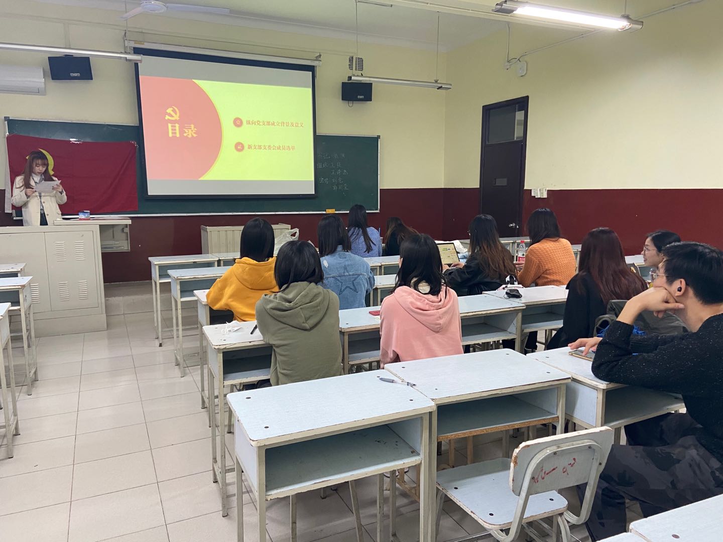 会议进行第一项内容,由辅导员李响向支部党员介绍纵向党支部成立的背景及意义,李响同志指出,研究生纵向党支部的成立有助于保证研究生党建工作的传承和支部文化的建设,发挥好党支部书记的带头作用;有助于各支部紧密结合团队建设和人才培养开展党建工作,更好地发挥党建工作的引领作用;有助于加强师生联动,各年级党员交流,发挥好导师的指导作用,加强党支部的凝聚力和战斗力。
