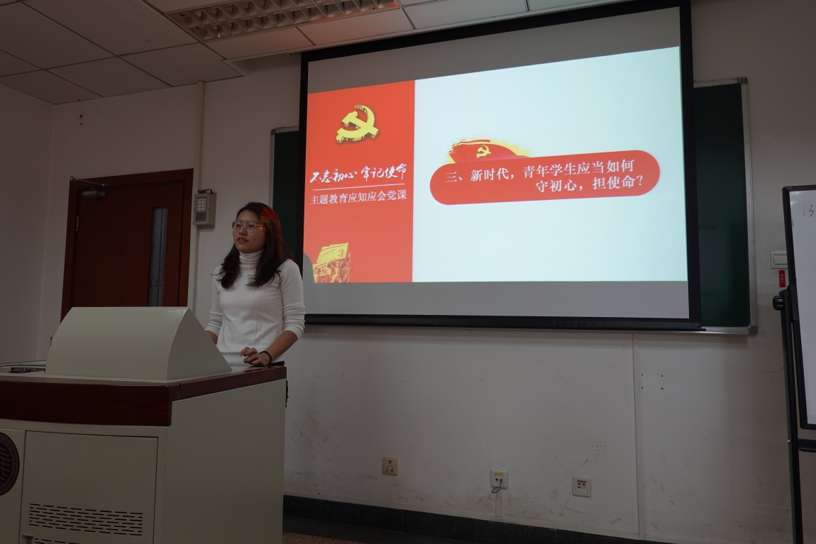 学习环节结束后,每一位支部成员都上台说出了自己对于新时代青年应当如何守初心,担使命的理解。而对于在员工阶段初心与使命如何完成,广大同学都表示,“要踏踏实实学习,认真做科研,同时要勇于创新”。