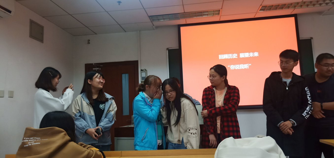 本次主题班会有着分专业后班级第一次班会的特殊含义,因此班级进行了破冰小游戏“你的名字”来使同学们熟悉彼此。游戏中当击鼓传花的鼓声落下,被抽到的同学要根据团支书随机抽取的汉字,在五秒内说出3个名字中包含所抽汉字的同学。游戏拉近了同学间的距离,也让后续分队伍合作完成团日活动的模式能顺利推进。将同学们分成两队,每队派代表讲述自己所见所感的祖国形象,借此来表达同学们对祖国的自豪感和爱。