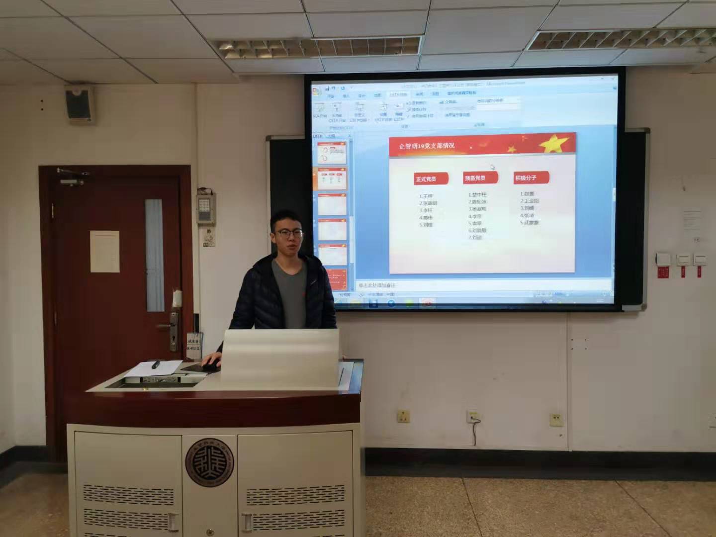 首先,刘维同志为全体成员简单介绍了支部目前的基本情况,以及下一阶段支部内部分预备党员同志转正的安排。随后,他为大家介绍本次民主评议会的主题和参评的党员,并详细传达了学校关于开好党支部组织生活会、开展民主评议党员的相关要求。