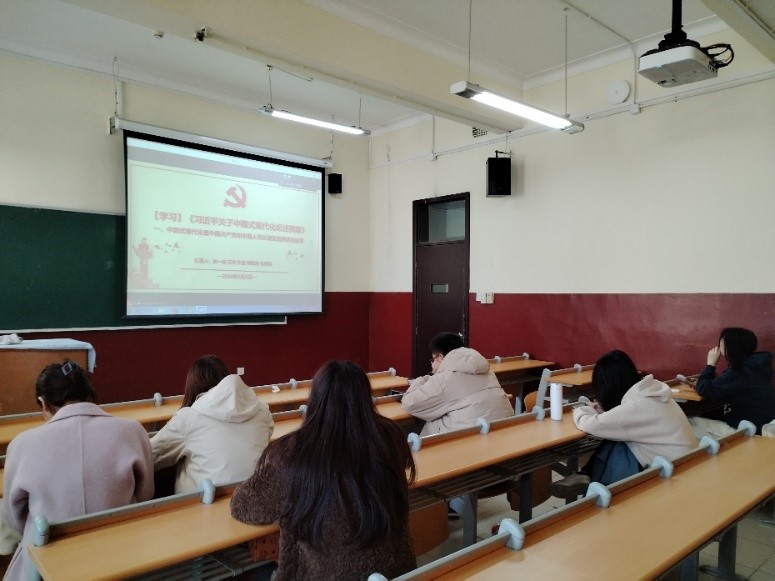 会议最后,党支部以小组的形式展示了关于《习近平关于中国式现代化论述摘编》的学习成果。“最高的顶层设计”“统筹兼顾”“人类文明新形态”……与会同志们通过一个个关键词串联起了中国式现代化的宏伟蓝图,支部书记李盈霏同志强调,习近平总书记关于中国式现代化的重要论述,立意高远,内涵丰富,思想深刻,我们要结合学习《摘编》,全面学习贯彻习近平新时代中国特色社会主义思想和党的二十大精神,为以中国式现代化全面推进强国建设、民族复兴伟业而团结奋斗。