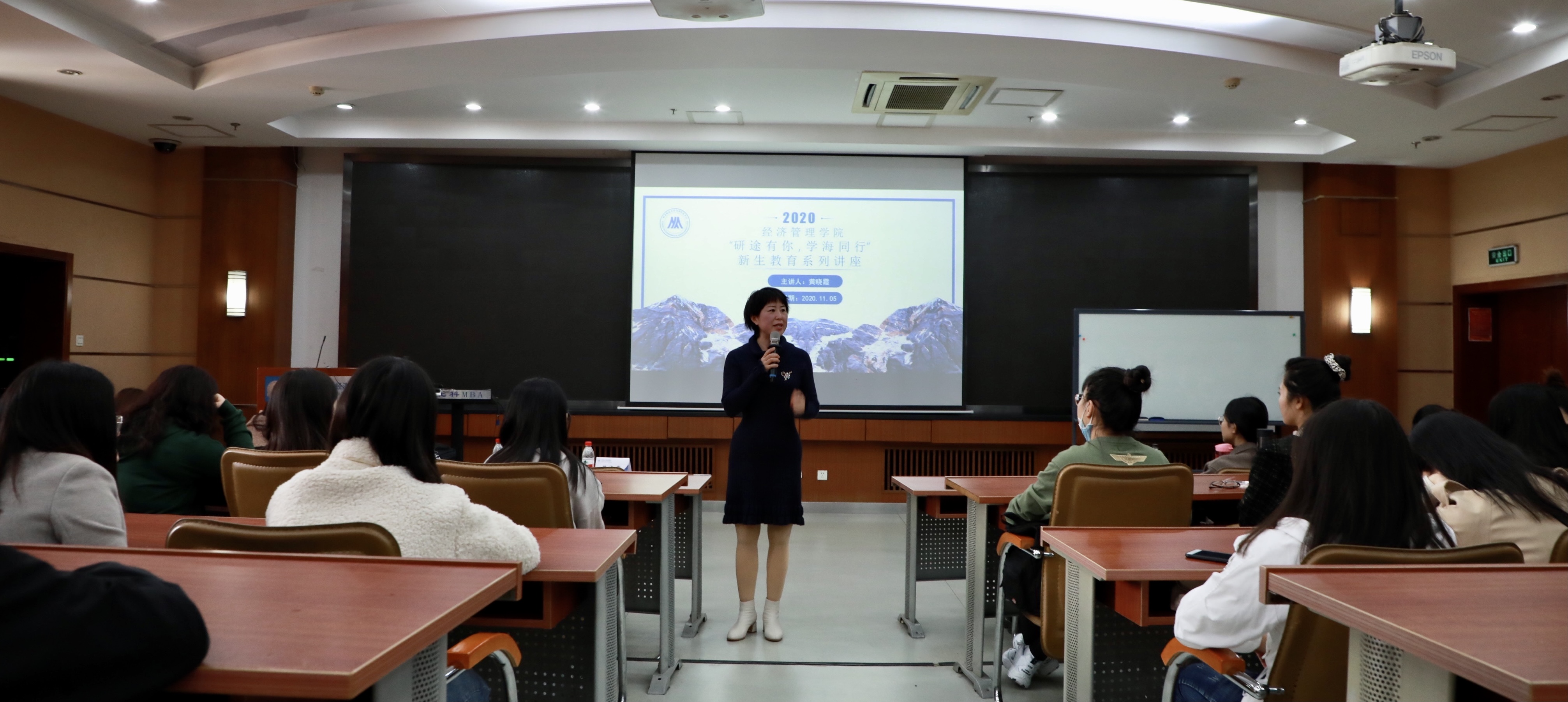 11月5日下午13:30,经管学院副经理黄晓霞教授在管理楼405教室进行了主题为“研途有你,学海同行”的新生教育系列讲座。英国威廉集团官网2020级全体研究生、辅导员李响共同聆听了讲座。