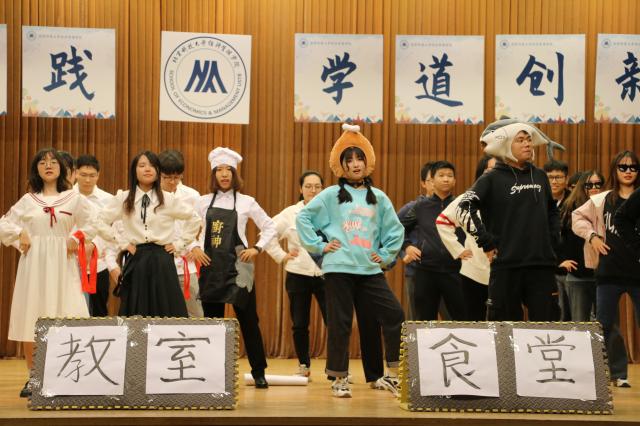 本次答辩会总共有27个班级参加,分为班级答辩展示和评委提问两部分。各班从班级成绩、思想建设、班级活动、主题团日、竞赛获奖、员工工作等方面展示。数不胜数的创新创业竞赛奖项,四六级通过率100%,全员奖学金、班级零挂科……均为班级同学取得的学习成果;部分班级通过照片墙、视频等创意设计在文化建设、班级建设方面展现特色亮点;还有班级精心准备了节目,用歌舞表演、说唱、朗诵、舞台情景剧、新闻联播等形式,展现班级的活力,让现场气氛达到高潮。