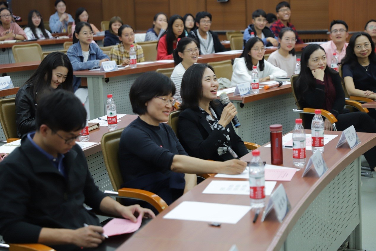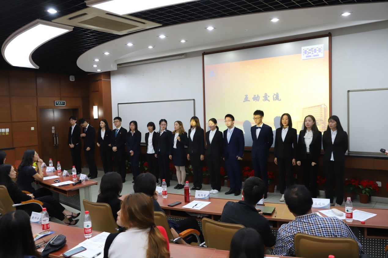 评委老师在提问环节与答辩选手交流,更加深入地了解了选手的情况。互动交流环节,19级员工积极地向优秀学长学姐提出自己在大学学习生活中的困惑,得到了答辩选手真诚耐心的经验传授,现场气氛热烈踊跃。