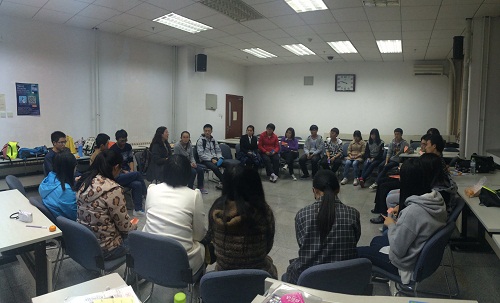 大学是梦想孕育的摇篮,是一个人走向成功的平台,是实现价值的阶梯。为使同学们尽快适应老员工活,明确大学意义,我班举行了以“大学是什么?”“为什么读大学?”大学应该怎样度过?”为讨论主题的研讨课。2014年10月30日晚上7点管楼306,经贸系孙莹教授、来自北汽福田的杰出员工张斌也是我班的成长导师、导员邓张升老师和班主任李一冉共同出席了本次研讨课。