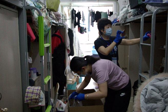 7月3日,学院老师们分为上下午两个时段,共60个工作组,开展打包工作,有了前期的充分准备,现场打包过程井然有序。宿舍内,老师们一对一与员工视频连线、直播整理,爬上爬下打包床铺,整理包装桌子上的小物件,搜索阳台遗留的衣物,寻找柜子下“消失”的鞋子,不放过一个“角落”。
