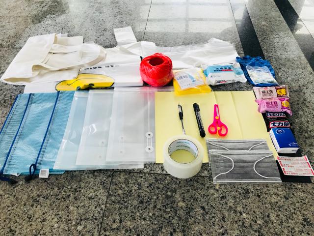 “师生对接组”设计并制作《员工信息表》和每位员工的《待取物品清单》,建立微信群,做好师生的联系沟通。“物资保障组”采购了手套、剪刀、胶带、口罩、各种型号塑料袋、文件袋等用品,为每一位老师准备了丰富而周到的“物资包”。