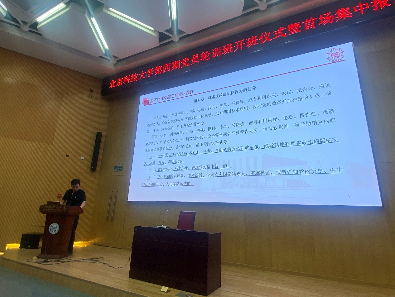 《谈青年党员老员工的成长》。武森从祖国的伟大发展道路、青年人的理想信念、爱国精神等内容出发,列举党史上伟人和先烈的例子,来启示学员们不忘初心,激励学员们相信信仰的力量,要在大学的黄金时期多学,担当时代的责任,引得台下学员们共鸣。