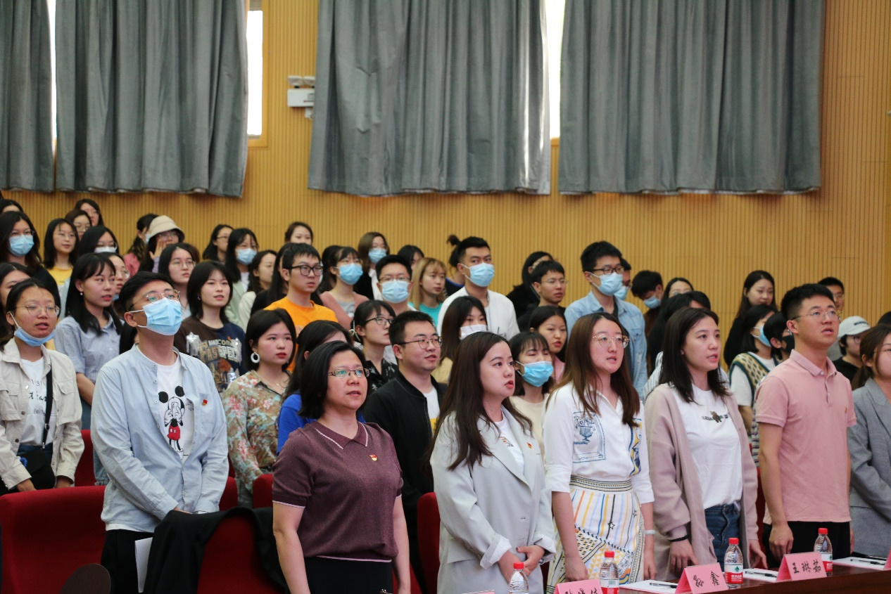 活动开始,全体起立,面向国旗奏唱国歌。