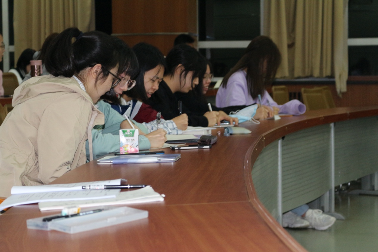 在会议中,同学们认真倾听、做笔记,并向学姐与小班主任提出了不少有意义的问题。