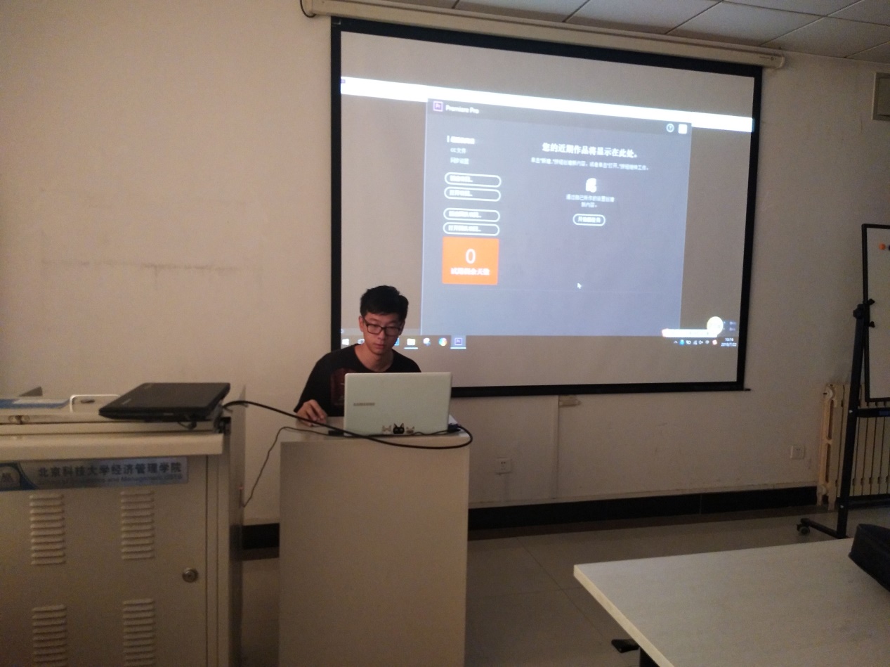 7月22日上午,宣传培训最后一讲在经管楼511举行。此次邀请到讲师韦雨辰和张宇浩进行图片处理和视频剪辑的培训。韦雨辰和张宇浩结合海报的具体制作过程与视频剪辑的具体过程向参加培训的宣传部成员讲解图片处理与视频剪辑的基本操作,讲解简单易懂。培训过程中,参与培训的学员跟随讲师的讲解实际动手操作,与讲师进行沟通,基本掌握相关技能。