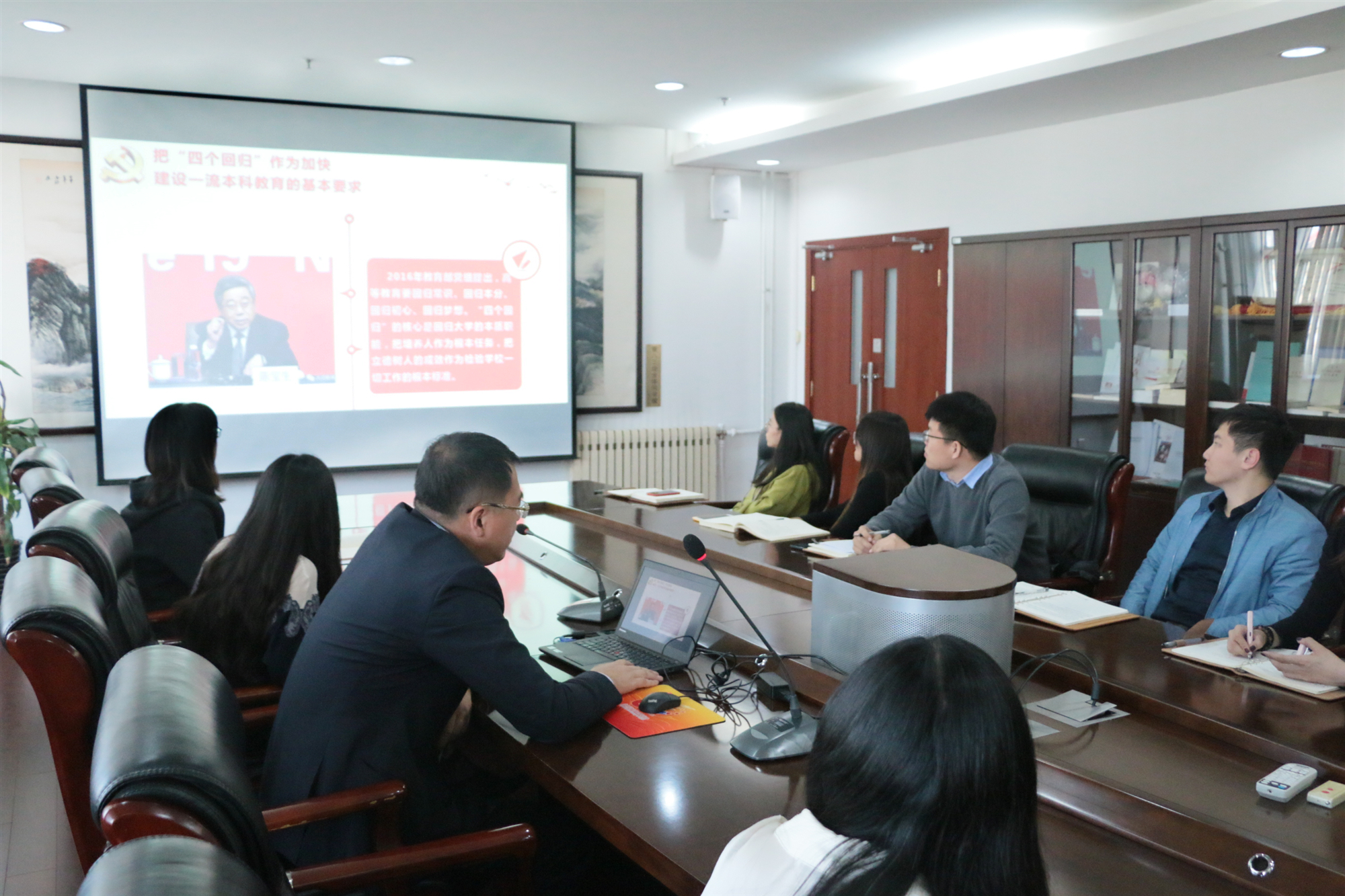 为全面深入开展“不忘初心,牢记使命”主题教育活动,激励辅导员队伍自觉增强政治担当、历史担当、责任担当,东凌英国威廉集团官网经理闫相斌于10月18日下午3点在经管楼809,以《教育报国守初心,办好中国特色社会主义大学》为题讲授了一堂生动的党课。公司党委副书记倪宇、学工办全体辅导员参加。闫相斌在授课中紧紧围绕“不忘初心、牢记使命”主题教育总要求,从四个方面进行了深入解读。