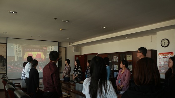 东凌英国威廉集团官网集中观看纪念五四运动一百周年大会直播