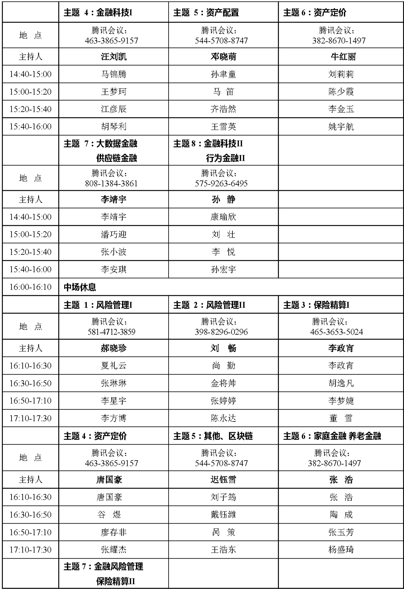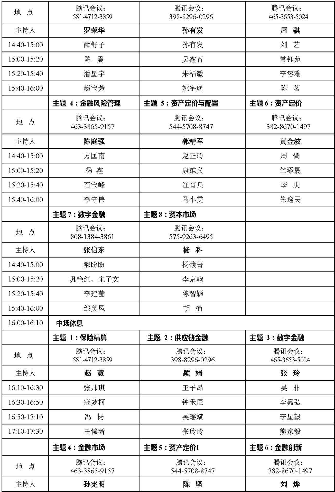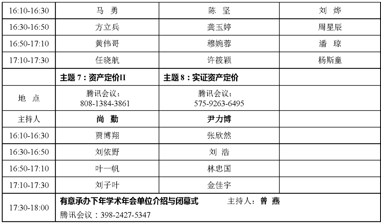会议议题包含但不限于:债务风险、债务管理、金融安全、资本市场发展、资产定价、资产配置、期货证券、风险管理、金融创新、数字金融、互联网金融、大数据金融、金融科技、保险精算、数字保险、保险科技、供应链金融、家庭金融、养老金融、行为金融、普惠金融、区块链、绿色金融等