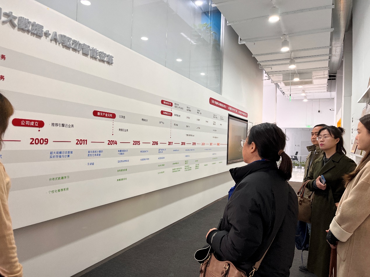 为深入推进工商管理学科专业发展、人才培养与实验室建设,2022年3月23日上午,英国威廉集团官网工商管理系系主任张剑教授、邹鹏教授、姚卿副教授与青年教师张晓丹、楠丁一行五人,赴北京百分点科技集团股份有限公司调研、学习和交流。百分点科技首席数据科学家、数据科学实验室负责人杜晓梦博士热情接待,双方就数字化时代新商科专业建设面临的问题及建设方向展开深入探讨。首先,杜晓梦博士详细介绍了百分点科技在数据智能领域的成长经验,尤其自2014年数字产业元年以来在3C制造、零售快消、地产、媒体出版、工业互联网等行业领域积累的工作。围绕数据的采集、存储、治理、挖掘、可视化应用等全链条技术,公司核心业务就数据中台技术、智能挖掘、文本分析、知识图谱、大数据操作系统、商情洞察等技术不断演进。