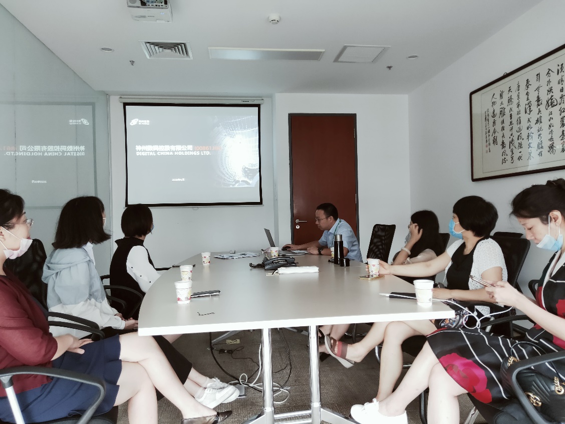 在经管学院工商管理系书记李晓辉副教授、副主任姚卿副教授及隋杨副教授的带领下,5位同学现场来到神州数码控股有限公司参观学习,同时有80余位同学参加了线上“云”参观。