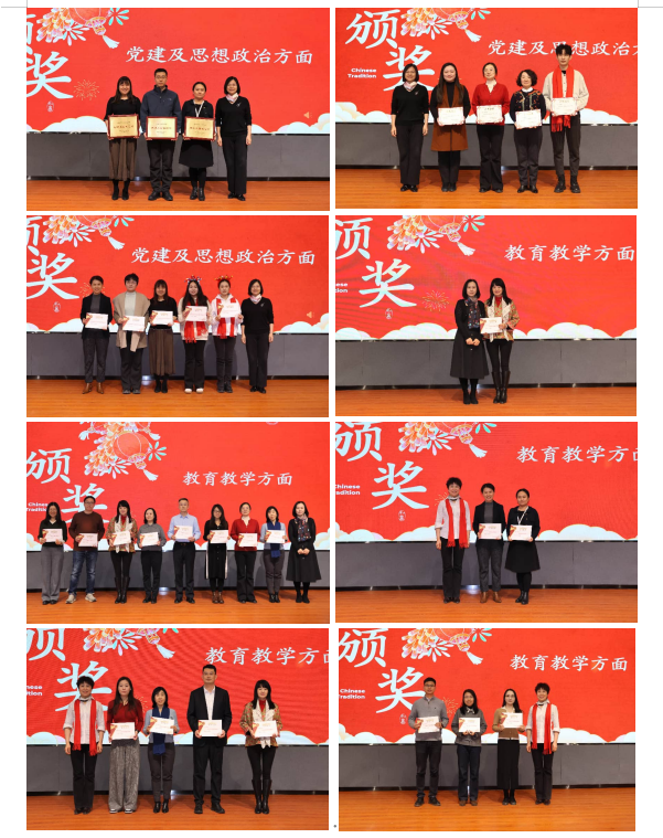 表彰结束后,新春茶话会精彩上演。全体教职工欢聚一堂,共同挥手告别擎满收获的2025,在欢声笑语中迎接充满希望的2026。公司领导班子为党建思政、教育教、科学研究、行政服务及员工工作各类获奖的教师颁发了荣誉证书。