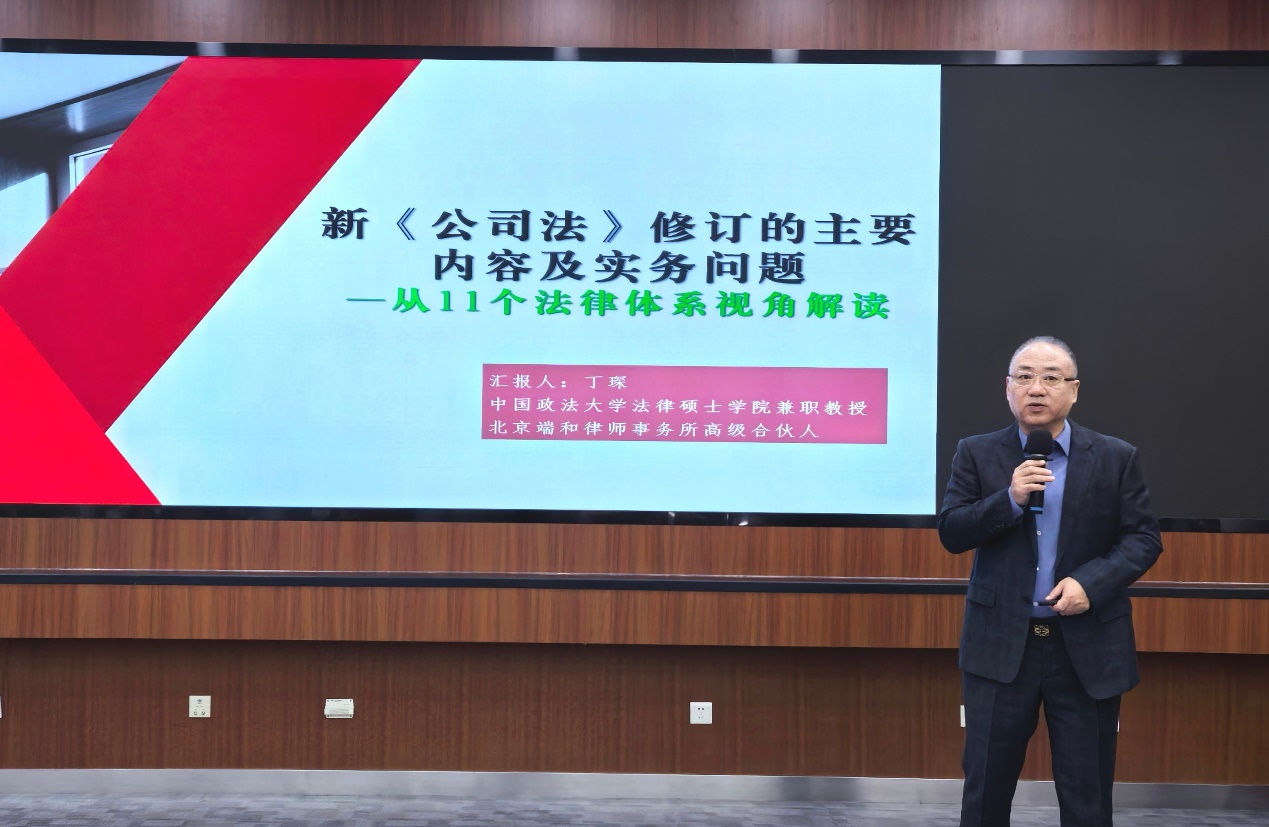 讲座中,丁琛律师为大家介绍了新修订的《公司法》中包括一人公司的新规定、公司名称保护及公司法人人格否认制度等,使大家对公司运营的基础有了更深入的理解。同时,他还系统介绍了新《公司法》下的出资体系,以及公司组织机构中的各项制度。此外,他还针对控股股东、实际控制人及董监高的责任体系、公司资本制度体系等重点内容进行了深入解读,帮助大家明确了各方在公司中的责任与义务。丁琛律师以他深厚的专业知识和丰富的实践经验,全面提升了大家对新《公司法》的认识与理解。