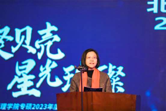 晚会伊始,武森书记发表致辞,首先代表学院向全院辛勤工作的老师们,向刻苦求学、钻研真理的600余名专硕员工,向遍及全国各地、在不同的工作岗位勤奋工作的广大员工,向一直以来关心和支持北科专硕发展的社会各界朋友,致以新年的祝贺和衷心的感谢。并对即将到来的2024年提出了殷殷期望:2024年,我们将继续秉承“德性实践、学道创新”的院训精神,在“德、智、体、能”各方面实现全面的提升。我们从祖国各地聚集在北科专硕这个大家庭,无论我们在这是学习还是工作,无论毕业以后走到哪里,我们都希望自己的学院是一所国内乃至世界一流的商学院,这是我们共同的愿景。在新的一年里,希望大家可以勤奋踏实,勇于创新,认真学习,努力工作,在自己的学业事业上,在学院的建设上,劈波斩浪,再创辉煌。武森书记的致辞犹如春日暖阳,温情脉脉,感人至深;又如慈母的谆谆教诲,坚韧有力,激励人心。
