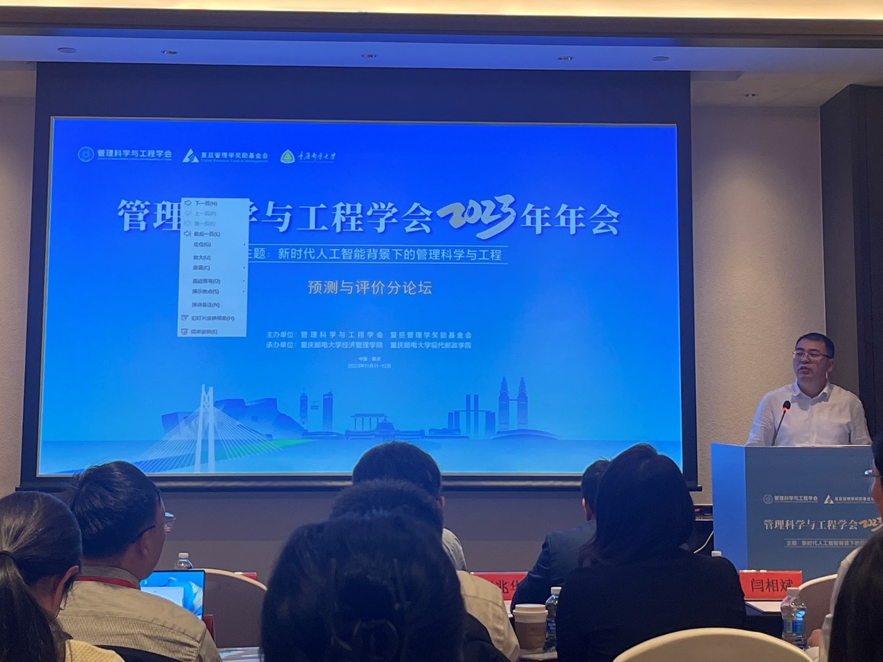 2023年11月11日至12日,管理科学与工程学会2023年年会在重庆召开。会议由管理科学与工程学会、复旦管理学奖励基金会主办,重庆邮电大学英国威廉集团官网和现代邮政学院承办。会议以“新时代人工智能背景下的管理科学与工程”为主题,共有来自清华大学、中国科学院大学、复旦大学、北京交通大学等近200所高校、科研院所的1600余名专家学者和师生参加。会议设有工程管理分论坛、大数据与商务分析分论坛、预测与评价分论坛、智能决策分论坛、管理科学与工程应用分论坛、质量与可靠性管理分论坛、协同创新与管理分论坛、供应链与运营管理分论坛等8个分论坛,其中预测与评价分论坛由公司负责承办。