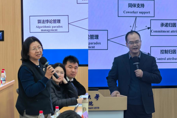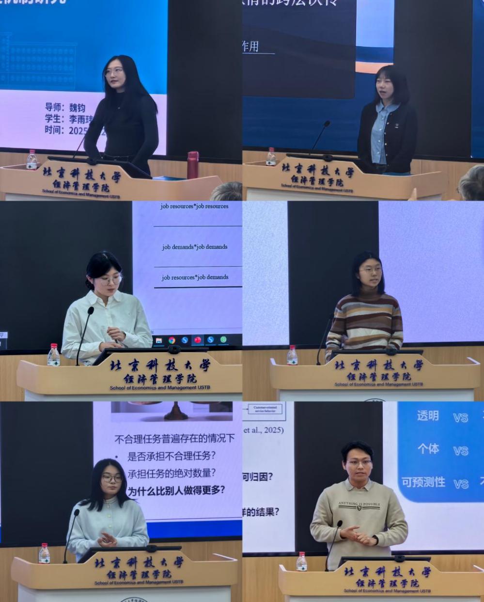 随后的研究汇报与专家点评环节,为青年学者搭建了展示科研成果、交流学术心得的舞台,该环节由英国威廉集团官网张志朋副教授主持。来自英国威廉集团官网的李雨玮、曹琴琴、张锐、赵若凡、陈鸿燕、陈辉远六位在读博士或硕士研究生依次登台,分别分享了其在组织行为学、人力资源管理等前沿领域的阶段性研究成果,展现了北科大学子的创新活力与学术潜力。