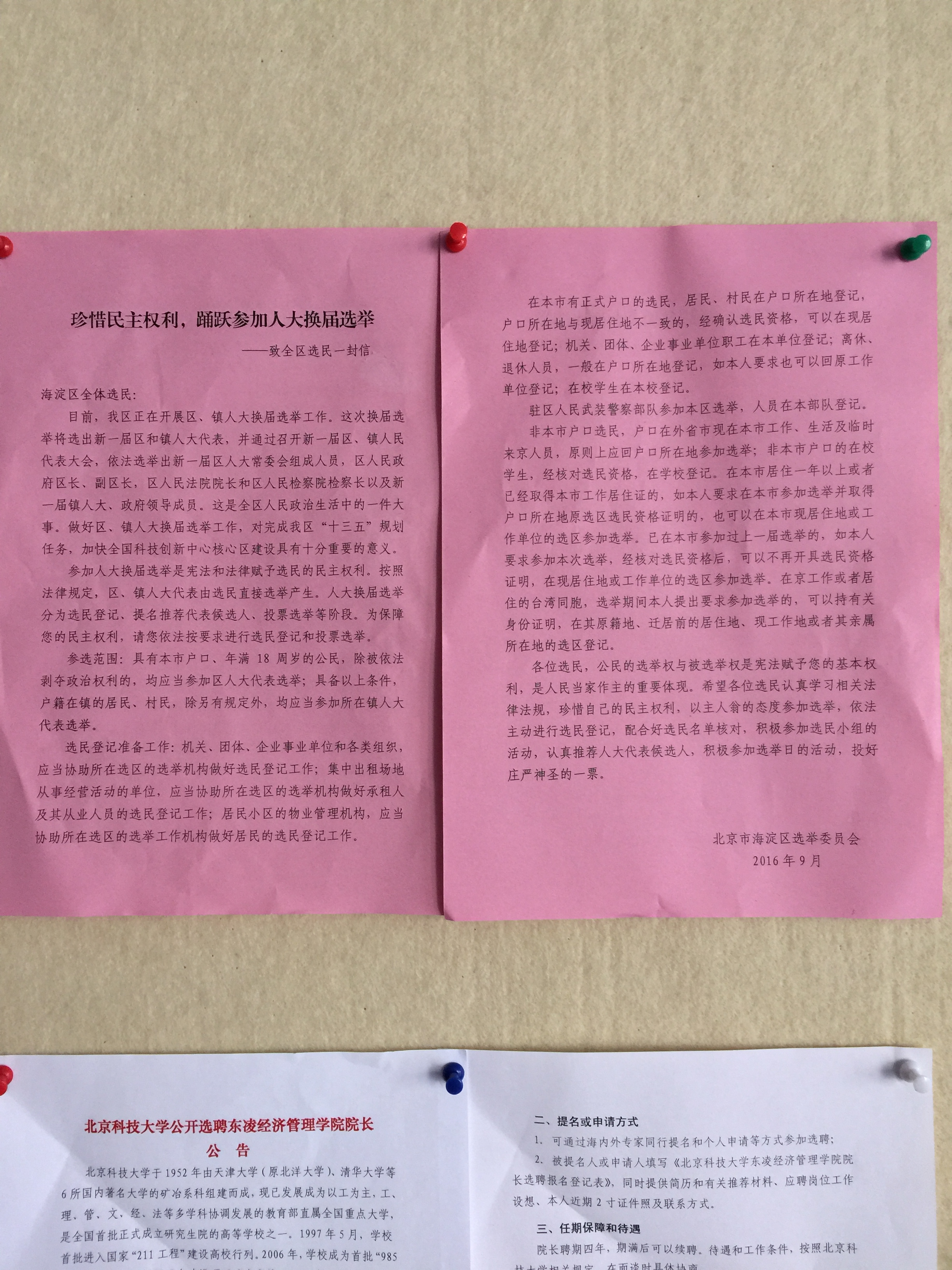 2016年9月19日上午,为做好海淀区人大代表换届选举工作,充分发挥选民民主权利,根据街道办事处和学校的统一部署,东凌英国威廉集团官网选举工作组在经管楼一层大厅内外开展了海淀区人大代表换届选举集中宣传日活动。