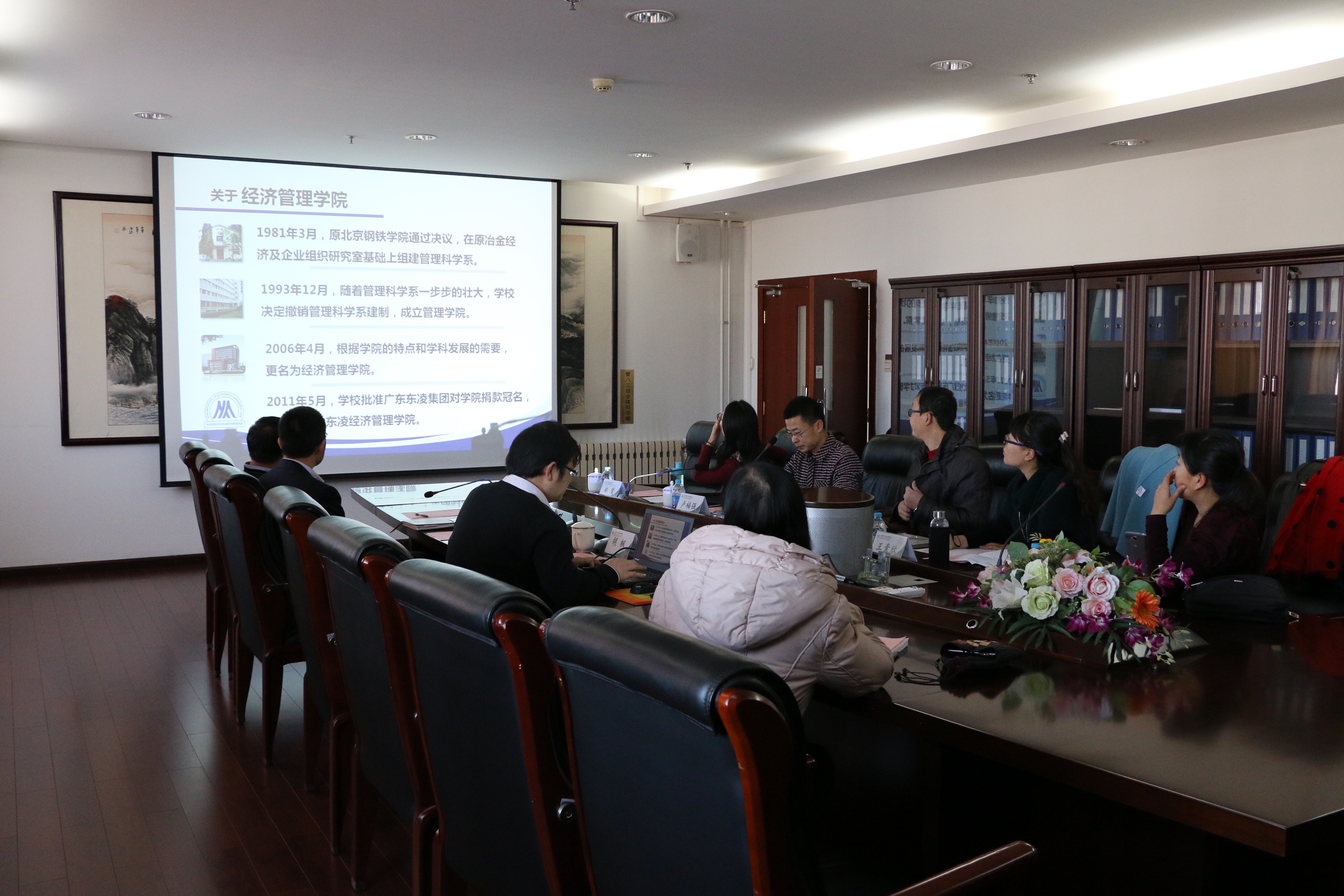 12月15日上午,东北大学秦皇岛分校管理学院来东凌英国威廉集团官网交流。出席此次交流有东北大学秦皇岛分校管理学院本科教学副经理孙朝阳,工业工程系主任王素欣,信息管理系主任卢福强,电子商务系主任原慧琳,电子商务系教师赵斐,以及东凌英国威廉集团官网本科教学副经理胡枫,教学办公室主任、金融系谢��,工程管理系主任马风才和管理科学与工程系张文新。