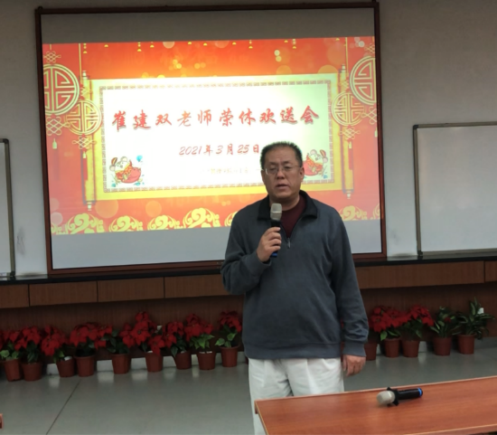 随后,与会的师生代表也纷纷发言,气氛温馨而热烈,表达了对崔建双老师在教书育人上严谨求实的敬业态度、对青年教师用心“传帮带”的无私奉献、对员工学习科研生活的悉心指导以及主动承担系所重要工作的敬意与感激,祝福崔建双老师退休生活幸福安康。