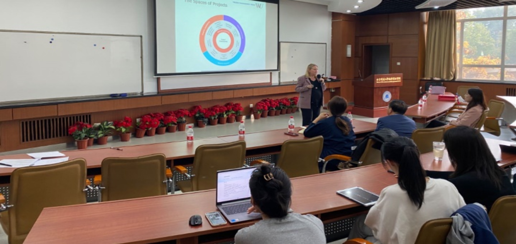Martina Huemann教授在学院313报告厅为近百位员工呈现了以“The Power of Projects”为主题的学术报告,除博士、硕士研究生和本科生外,相关领域的教师和职工共同参与了本次学术交流。Martina Huemann教授结合自身多年的研究经验以及担任高水平学术期刊主编的经历,分享了她对于项目型社会可持续发展和价值交付的深刻思考,她深入浅出地阐释了项目管理领域的前沿话题,与在场师生共同探讨了这一领域的未来发展方向。此外,Martina Huemann教授还分享了在高水平国际学术期刊发表文章的经验,为参会师生提供了实质性的指导。