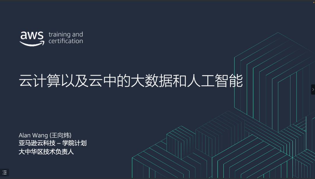 本次讲座围绕着“云计算以及云中的大数据和人工智能”的主题展开,从什么是云计算、云计算基础知识、云计算中的大数据与人工智能三方面,系统介绍了云计算技术的发展历程、核心理念、优势特点、基本操作流程与典型应用场景。王向炜老师首先从耳熟能详的IT热词(如大数据、物联网、人工智能、区块链等)出发,引导大家思考云计算在当今科技领域中的定位。接着,王老师为大家明确了“云计算”的定义,并通过亚马逊云科技的发展历程,讲述云计算的“前世今生”。经过多年发展,亚马逊云科技(Amazon Web Services,简称AWS)连续多年在Gartner全球云计算IaaS魔力象限中处于领导者地位,截止当前,AWS全球基础设施共提供26个区域和84个可用区,并且计划增加8个新区域,提供的云服务涵盖了分析、应用程序集成、增强现实(AR)与虚拟现实(VR)、区块链等诸多方面的IT资源,并具备弹性且可扩展、容错、高可用性等诸多优势。