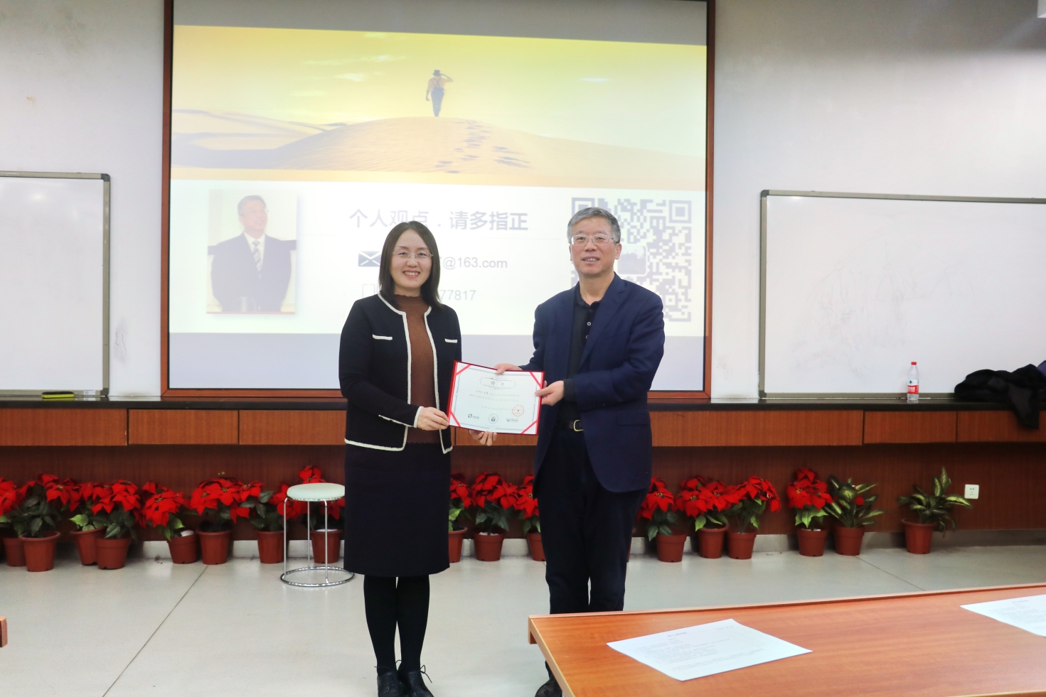 在同学们热烈的掌声中,李晓静副教授向王喆博士颁发了公司聘书,正式聘请王喆博士作为志远论坛的讲座专家。